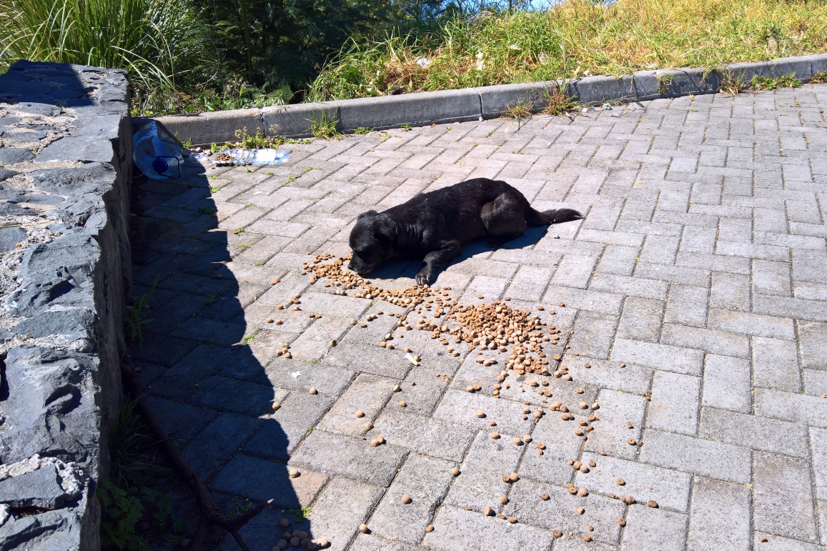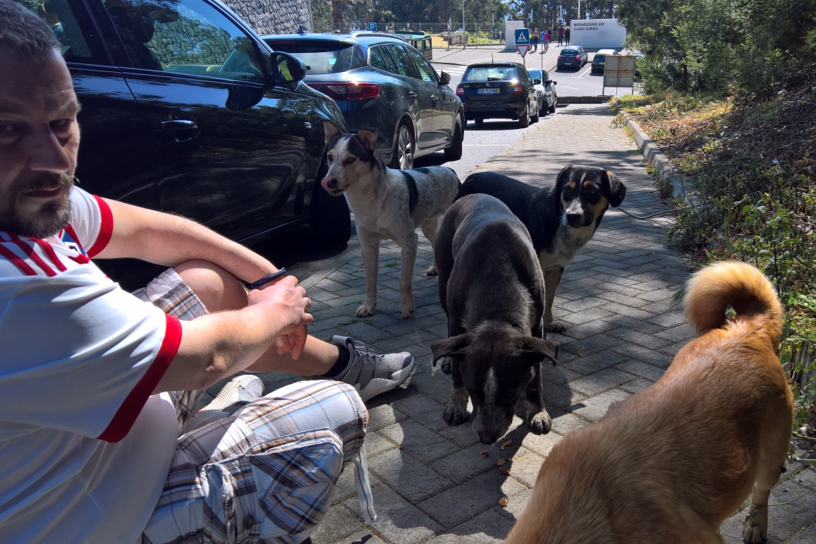 Bei einem Besuch am Cabo Girao, dort wo erst vor Weihnachten eine komplette Kolonie mit Gift ausgerottet wurde, wurde eine neue Gruppe von Hunden angetroffen, die sich dort oben zusammen gefunden hatten. Große und Kleine, Alte und Junge... aber alle in einem traurigen Zustand. Viele am Rande des Lebens angekommen. Dem ersten Impuls allen helfen zu wollen, kam schnell die Ernüchterung, der Schmerz und die pure Verzweiflung, dass dies nicht machbar ist. Also wenigstens eine Kleinigkeit tun und den Hunden Futter bringen und etwas Zeit schenken. Beim sich näher kommen und dem genauen Hinsehen, erkannte man Hündinnen mit Gesäuge, alte klapprige Hundeopis und traurige und resignierte Hundegesichter, denen das Leben übel mitgespielt hat. Das Leben und der Mensch.