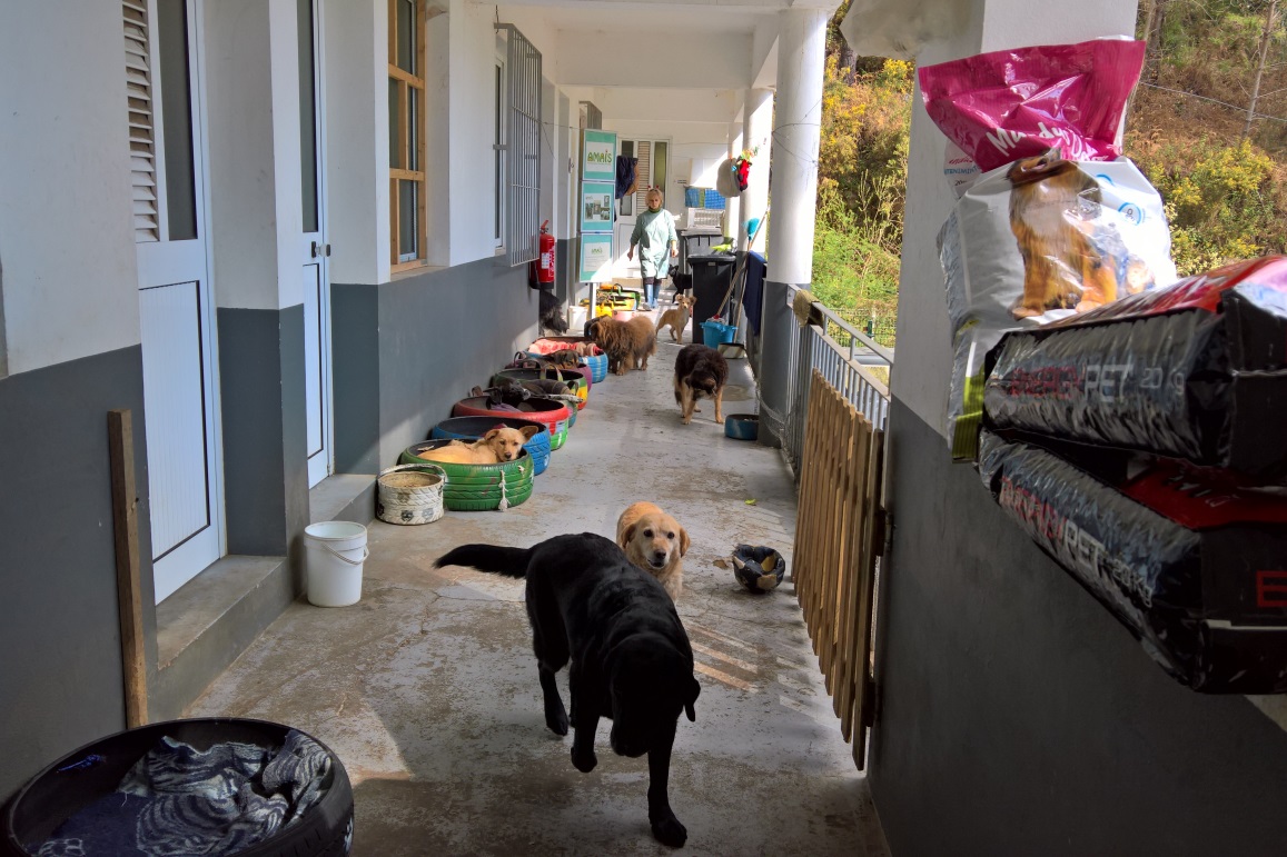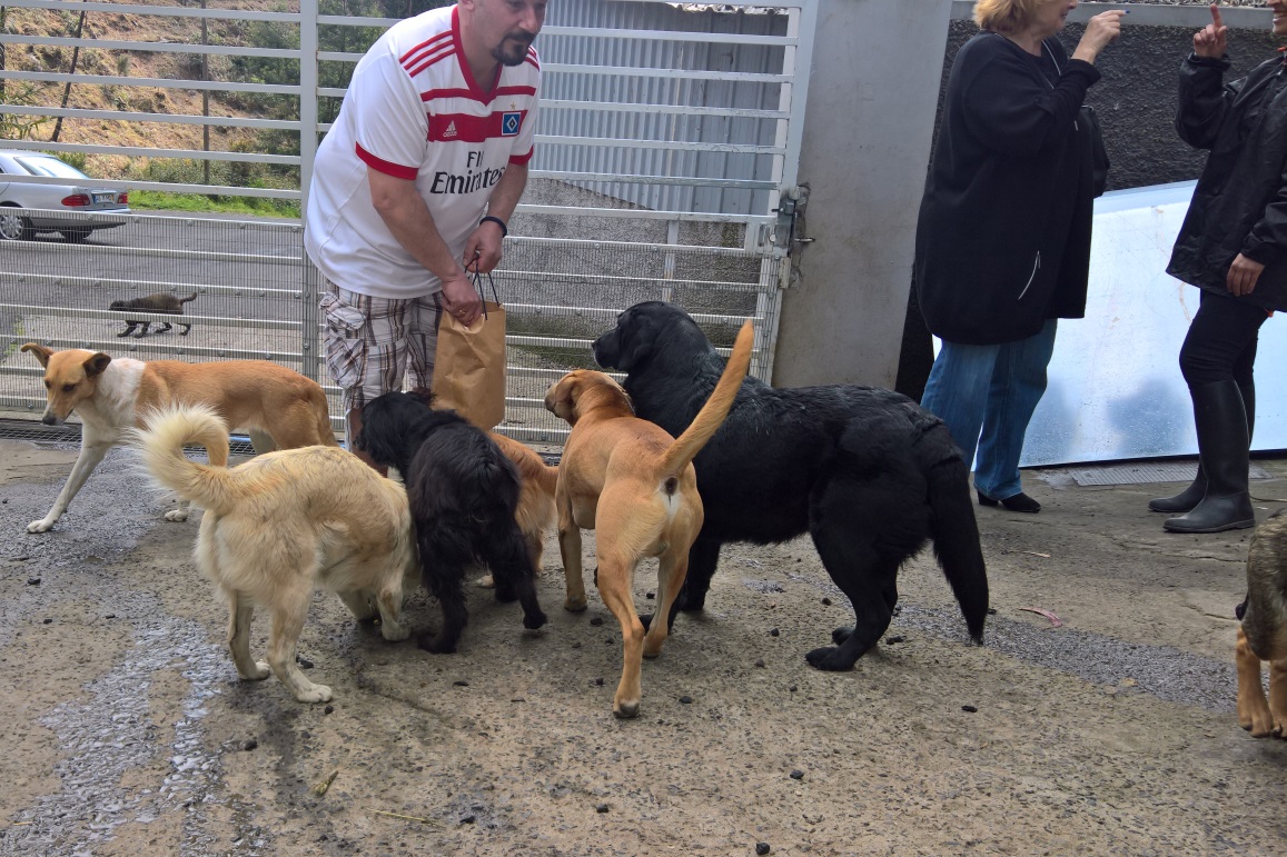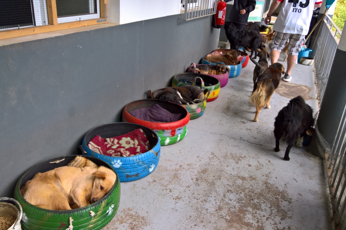 Man muss hier dazu sagen, dass die Helfer im Tierheim ihr Bestes geben um den Hunden ein wenig Würde zu erhalten, sie gut zu pflegen und zu füttern, aber es bleibt kaum für mehr Zeit bei der Masse an Tieren, die auch noch täglich dazu stoßen. Die Möglichkeiten der Zeit und der finanziellen Mittel sind hier eben begrenzt. An dieser Stelle unseren Dank an das Team des Canil Vasco Gil.